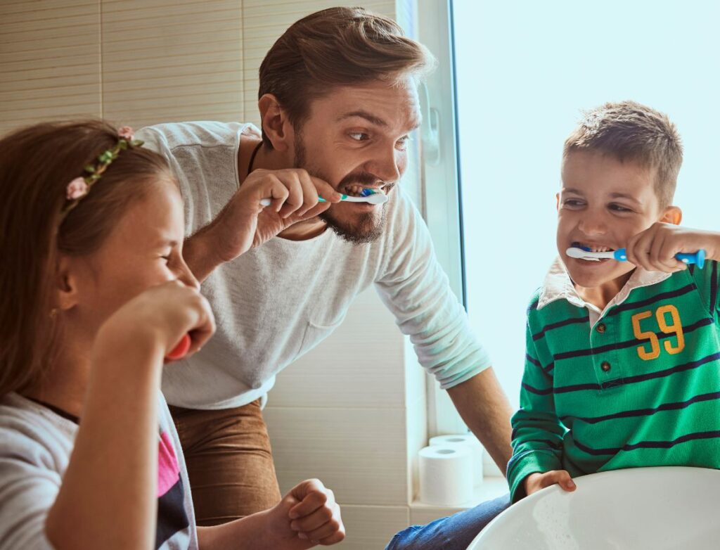 • Cha mẹ làm gương: cha mẹ và trẻ hãy cùng đánh răng một lúc, giúp trẻ hào hứng và hiểu được đây là việc mà ai cũng phải làm hàng ngày