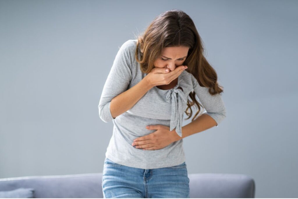Buồn nôn và nôn: theo thống kê thì khoảng 70% phụ nữ khi mang bầu sẽ cảm thấy buồn nôn và nôn trong 3 tháng đầu của thai kì.