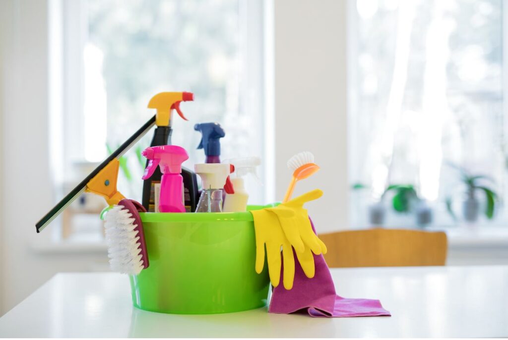Chúng ta có thể sử dụng các sản phẩm tẩy rửa để làm sạch dụng cụ như: nước lau sàn, nước lau kính, nước giặt,…